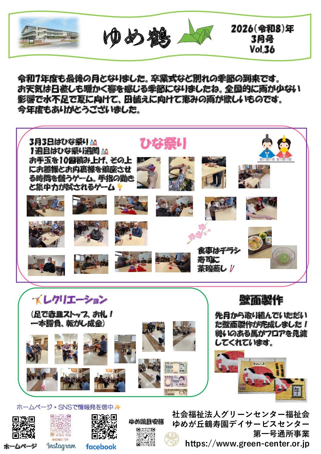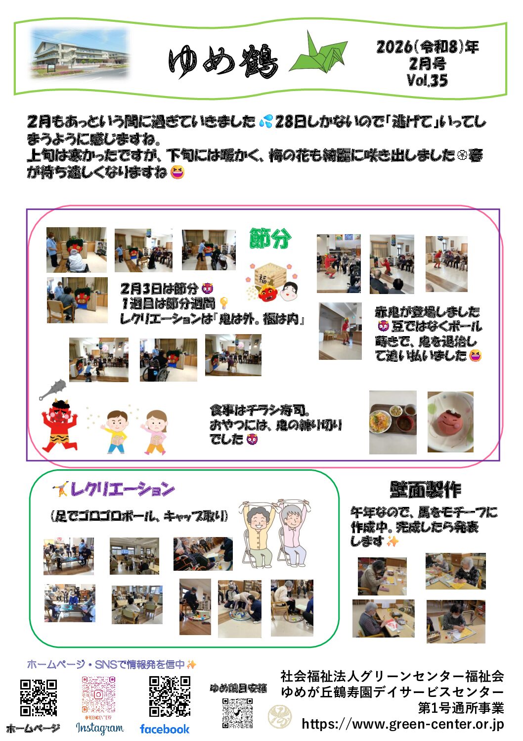ゆめが丘鶴寿園デイサービスセンター『ゆめ鶴』vol.35(2026(令和8)年2月号)を発行しました。 下記よりご覧下さい。 『ゆめ鶴』vol.35(…