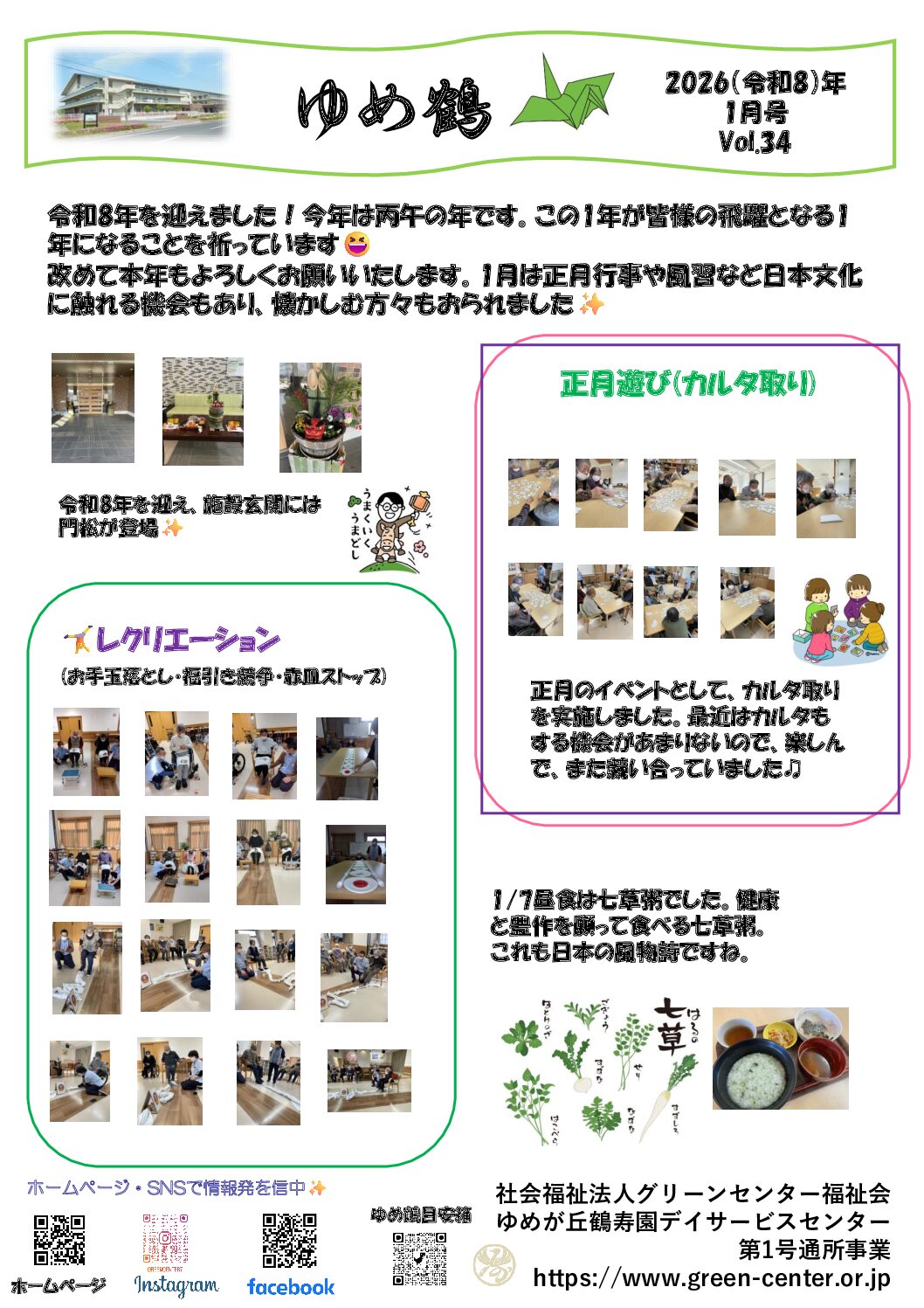 ゆめが丘鶴寿園デイサービスセンター『ゆめ鶴』vol.34(2026(令和8)年1月号)を発行しました。 下記よりご覧下さい。 『ゆめ鶴』vol.34(…