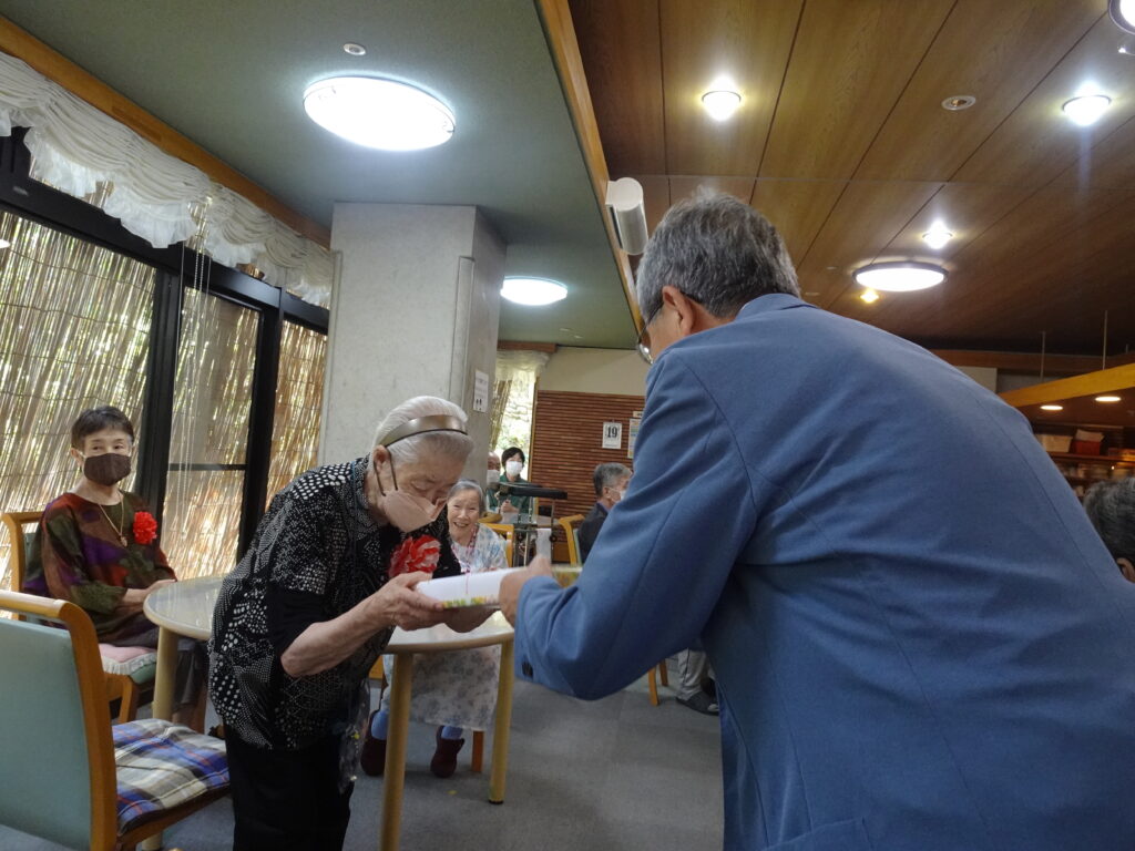 卒寿をはじめ、7名の算賀者の方を皆様でお祝いし、ケアハウス最高齢者2名の方にくす玉割りをして頂きました。