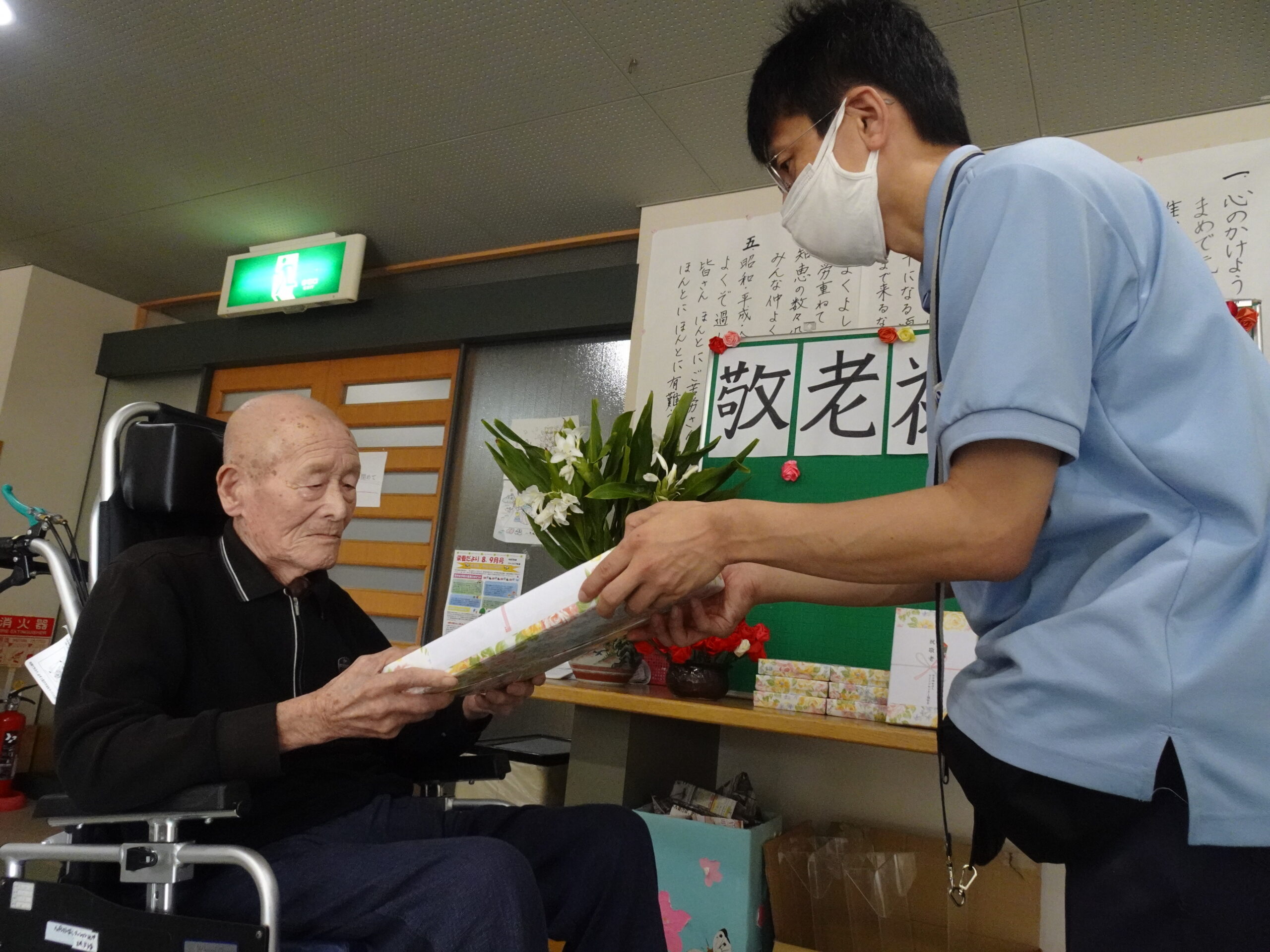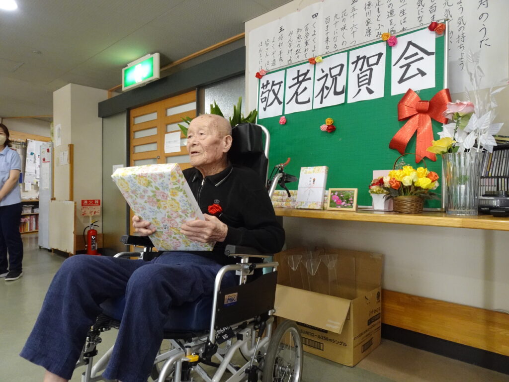 多床室の特養では卒寿の方がおられ、皆さんでお祝いをしました。卒寿のお祝いのお礼のあいさつでは「毎日家族と一緒にいるような気持ちになれてここに入らせてもらって良かったと思っています」と皆さんの前で話されていました。