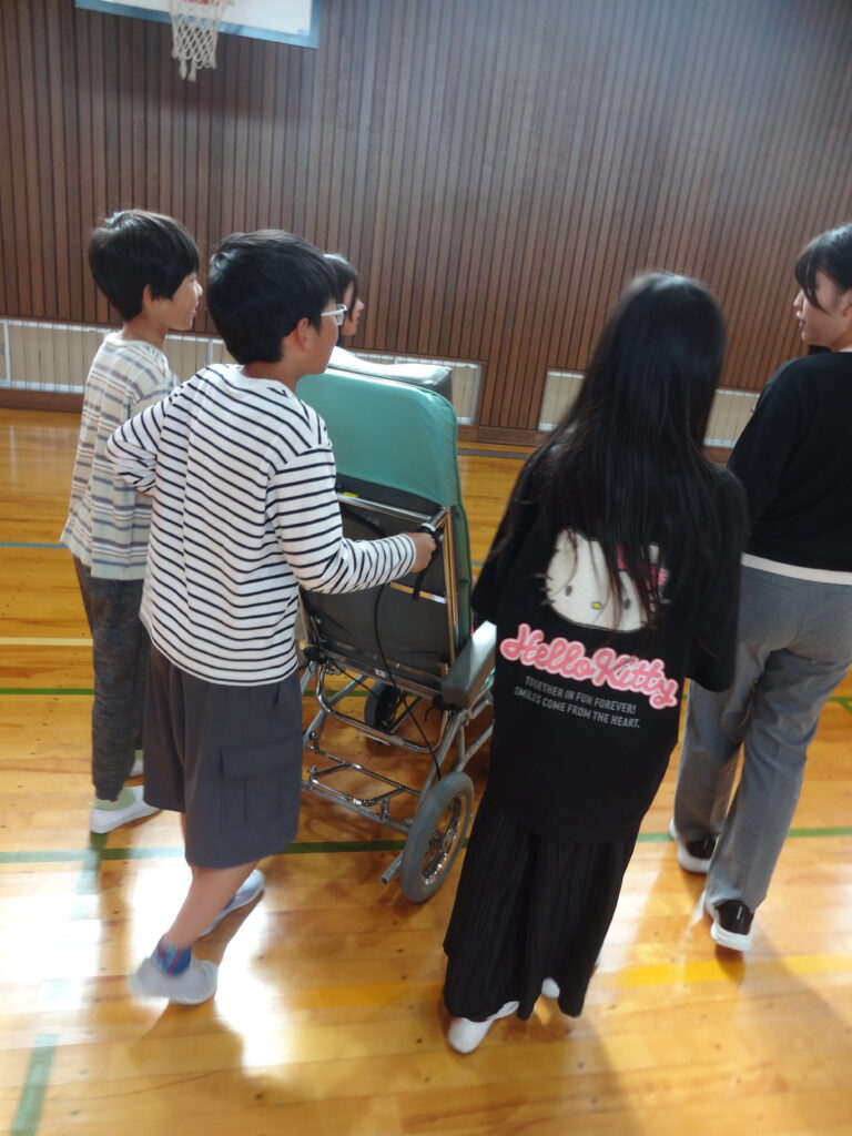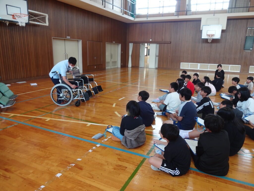 4年生39人を対象に、車椅子の説明と実際に乗って体験してもらいました。