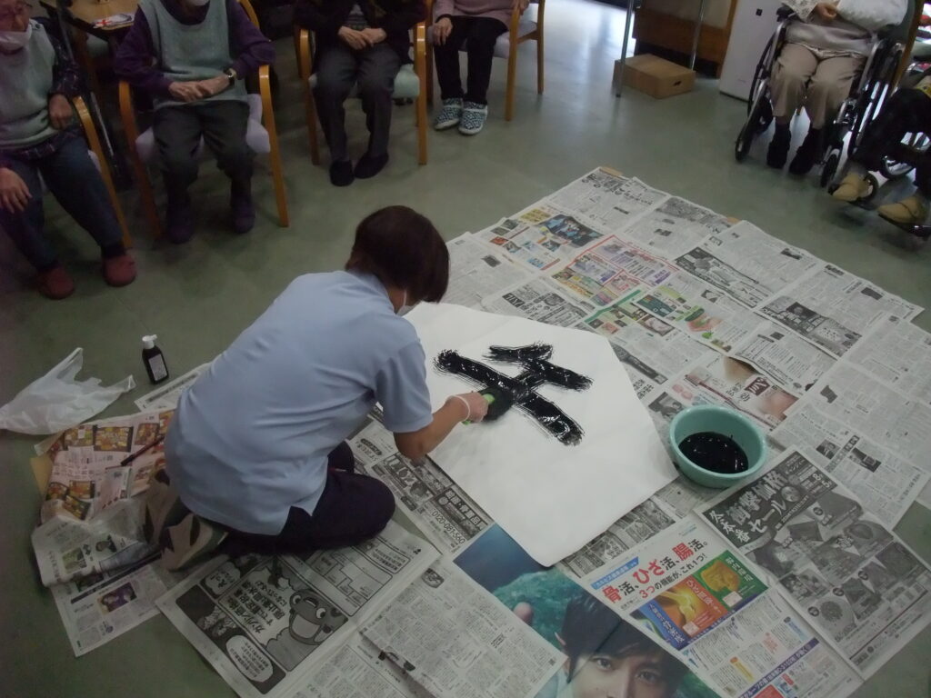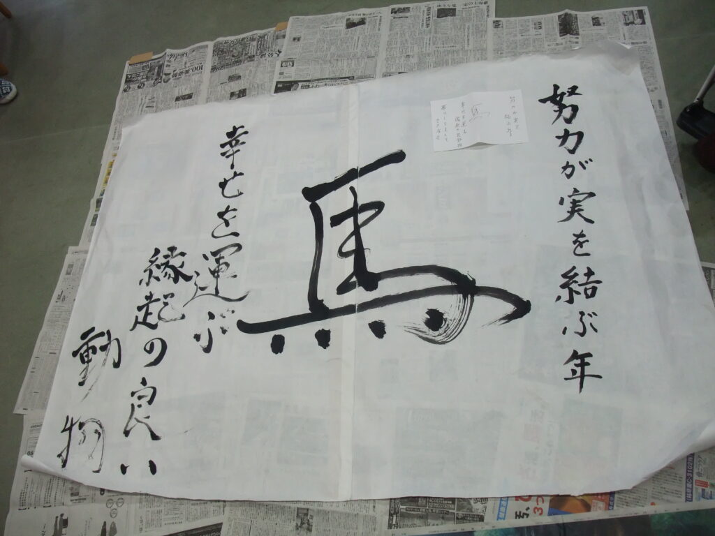 また、来年の干支である『馬』を職員が筆で力強く書き上げました。