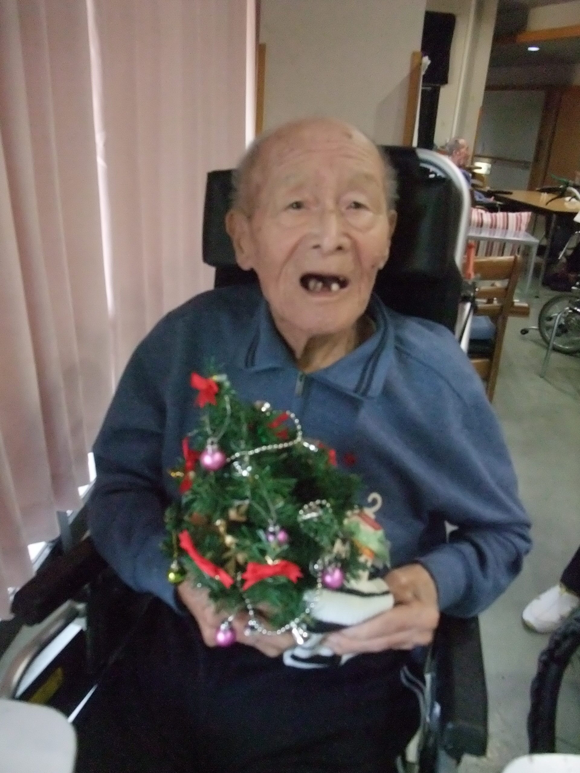 デザートのプリンアラモードにサンタクロースからのプレゼント。皆さん大変喜ばれていました!