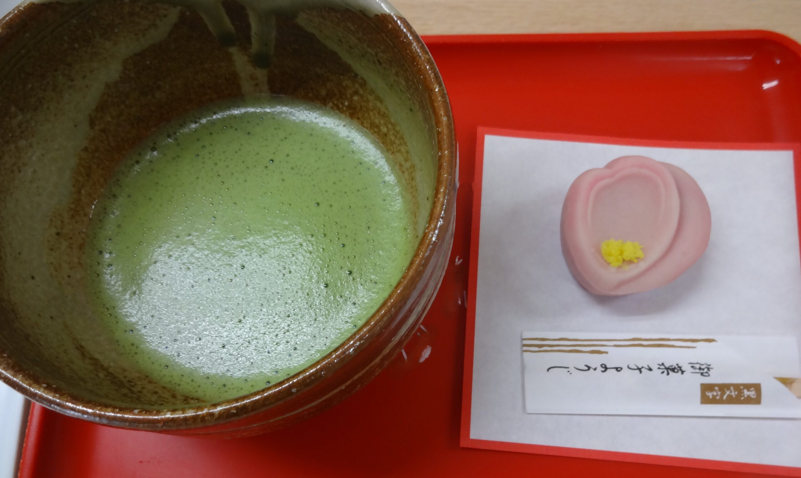 新春を感じる音楽が流れる中、和菓子を一口ずつ頬張り、お茶をじっくり味わっていただきました。