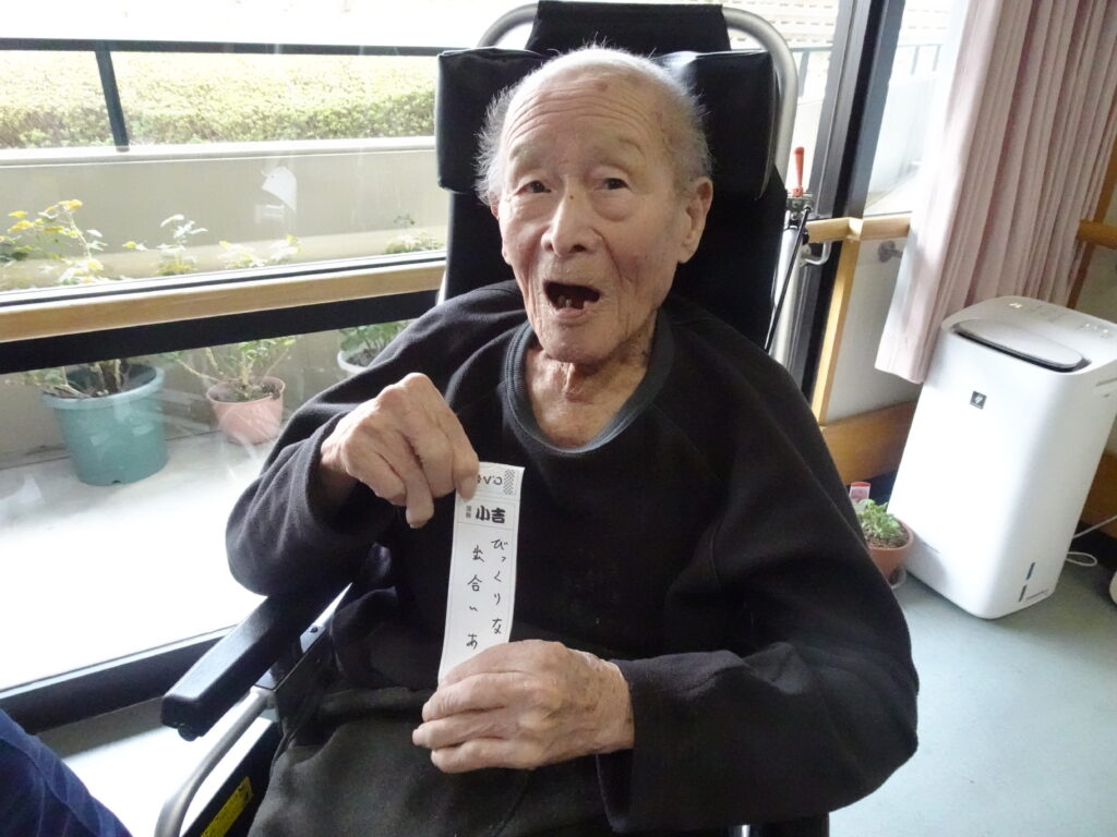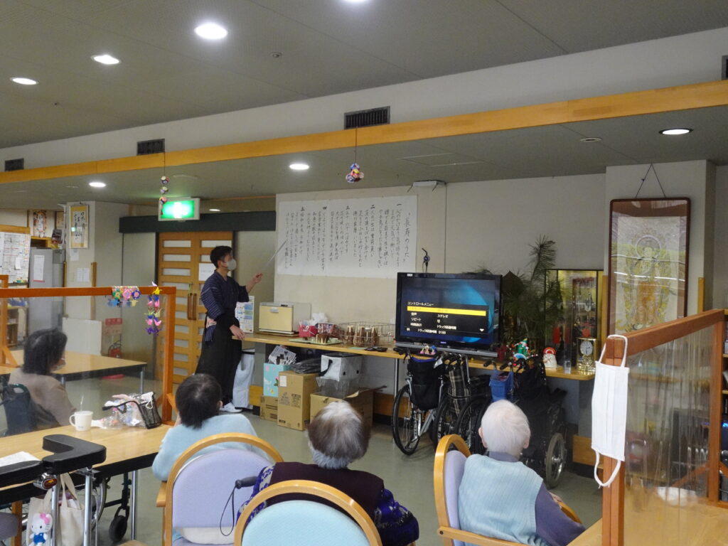 利用者様のリクエストで、皆さまと長寿の歌を元気に読み上げました。