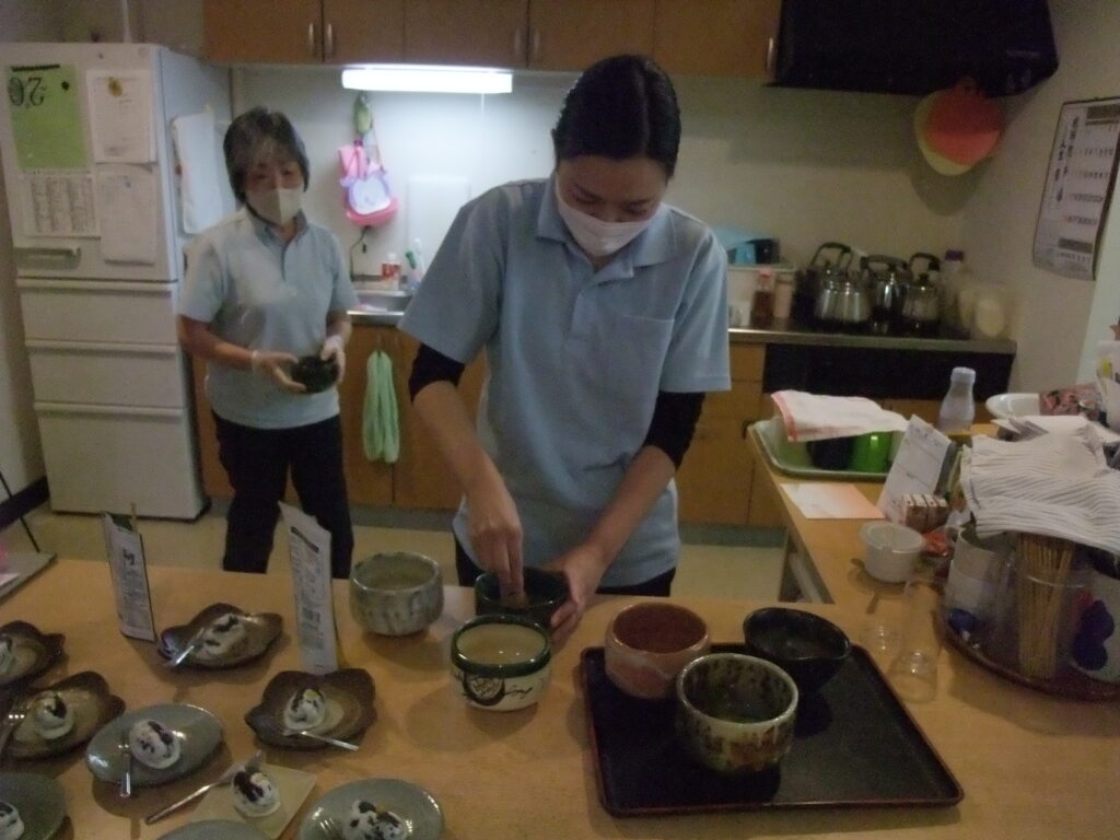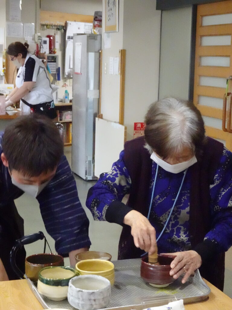 今年は職員と利用者様で協力し、お抹茶をたてました。